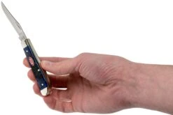 La Case Mini Trapper es una navaja tradicional con la clásica forma de Trapper. Este es un patrón que tiene su origen entre los cazadores y los furtivos. Esta versión especial tiene dos hojas: una clásica clippoint y una tradicional speypoint. Ambas hojas pueden utilizarse para destripar la caza capturada. Cuando se abren, se mantienen en su sitio gracias a un slipjoint. También se ha mejorado con la llamada half-stop (media parada). Esto significa que se detendrá a mitad de camino en el cierre para asegurarse de que puedes sacar los dedos.