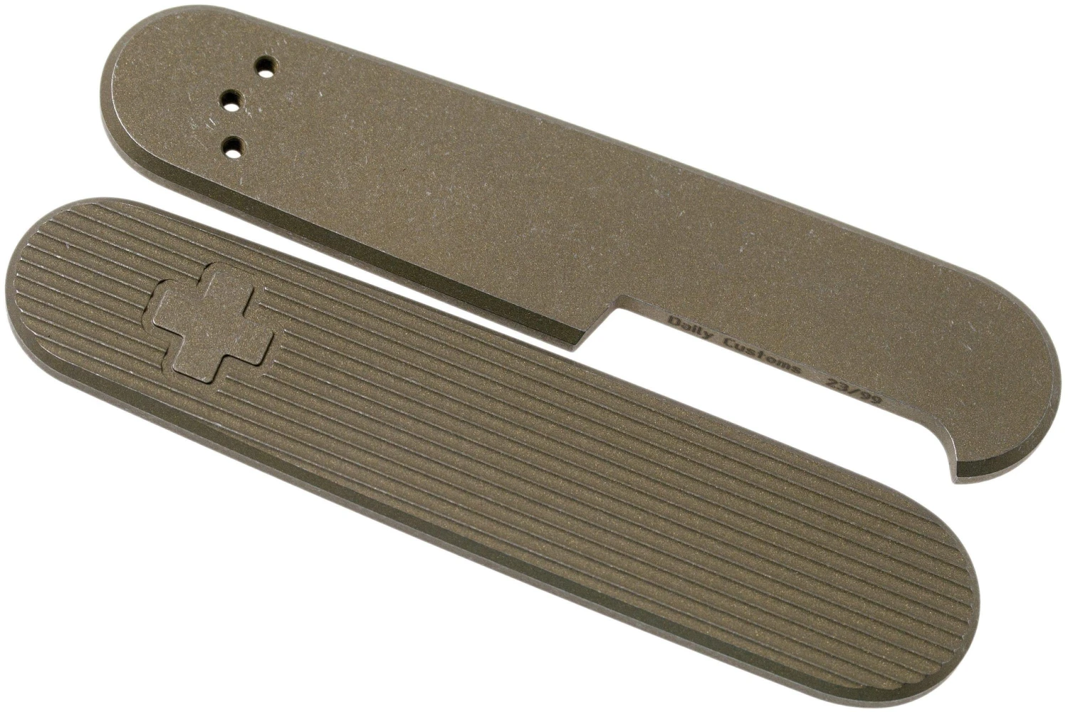 Estas cachas Daily Customs 91.2 Pinstripes Pattern, Rusty Titanium P10009394 Victorinox están hechas para navajas Victorinox con una longitud cerrada de 91 mm. Con estas cachas puedes actualizar tu querido clásico suizo.